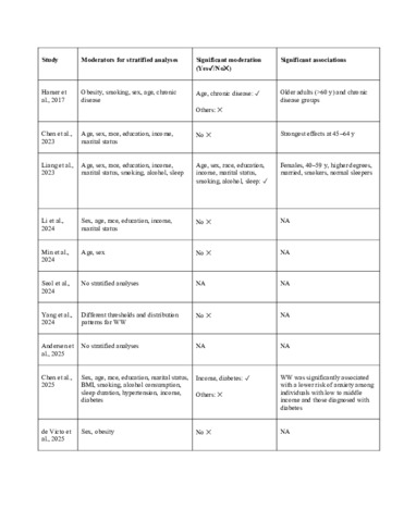 Twelve studies (eight cross-sectional, four prospective cohort) were included, mostly focusing on depression (N = 8). A narrative synthesis found that 10 studies confirmed the comparable association of WW and RPA with lower rates of depression and anxiety. All cohort studies (NOS Mean: 9 ± 0) and most cross-sectional studies (5.12 ± 0.64) were high quality. Inconsistent results may be partially explained by varying definitions of WW and populations, suggesting moderating effects of factors such as age and sex. Several studies indicate a U-shaped relationship between MVPA and mental health, but the evidence remains insufficient.Conclusions