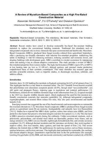 OJEDOKUN, Olalekan and O'FLAHERTY, Fin (2026). A Review of Mycelium-Based Composites as a High Fire-Rated Construction Material. Key Engineering Materials, 1046, 75-81. [Article]