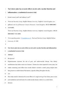 LAMB, Kirstie Louise and LYNN, Tony (2025). Tart cherry juice has no acute effects on uric acid, vascular function and inflammation: a randomised crossover trial. Nutrition and Health. [Article]