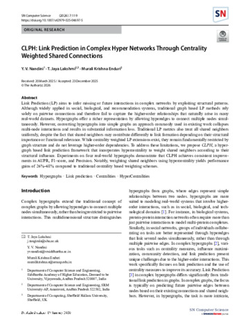 NANDINI, Y. V., LAKSHMI, T. Jaya and ENDURI, Murali Krishna (2026). CLPH: Link Prediction in Complex Hyper Networks Through Centrality Weighted Shared Connections. SN Computer Science, 7 (1): 119. [Article]