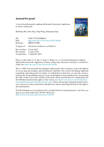 MAI, Zhaohong, ZENG, Chao, WANG, Ning and YANG, Chenguang (2025). A vision-based humanoid compliant skill transfer framework: Application to robotic cutting tasks. Biomimetic Intelligence and Robotics: 100280. [Article]