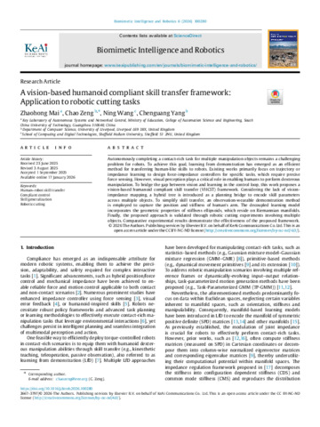 MAI, Zhaohong, ZENG, Chao, WANG, Ning and YANG, Chenguang (2026). A vision-based humanoid compliant skill transfer framework: Application to robotic cutting tasks. Biomimetic Intelligence and Robotics, 6 (1): 100280. [Article]