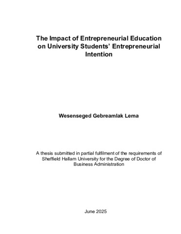 LEMA, Wesenseged Gebreamlak (2025). The Impact of Entrepreneurial Education on University Students’ Entrepreneurial Intention. Doctoral, Sheffield Hallam University. [Thesis]