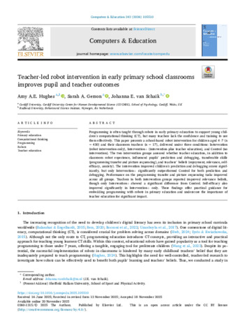 HUGHES, Amy, GERSON, Sarah A and VAN SCHAIK, Johanna E (2026). Teacher-led robot intervention in early primary school classrooms improves pupil and teacher outcomes. Computers & Education, 242: 105510. [Article]