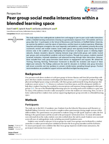 SMITH, David P, PEARCE, Sophie M, GIECHOS, Iosif and LACEY, Melissa M (2026). Peer group social media interactions within a blended learning space. Emerging Topics in Life Sciences, 9 (5). [Article]