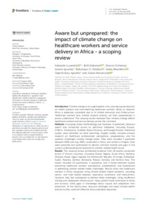 LUSAMBILI, Adelaide, NAKSTAD, Britt, OCHIENG, Sharon, IGWEIKE, Isioma, ADEBIYI, Babatope O., BHANBHRO, Sadiq, IGWEIKE, Ogechukwu and NATUKUNDA, Julian (2026). Aware but unprepared: the impact of climate change on healthcare workers and service delivery in Africa - a scoping review. Frontiers in Public Health, 13: 1693703. [Article]