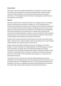 NEWMAN, James (2026). How does Bullying Exposure Profile Membership link to Basic Psychological Needs Thwarting and Psychological Functioning? A Person-Centred Approach [abstract only]. In: Division of Sport and Exercise Psychology Annual Conference 2025 : abstract booklet. The British Psychological Society, p. 56. [Book Section]