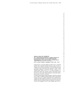 STONEYSTREET, Kendal, VILLARROEL-WILLIAMS, Nazmy and BENNETT, Cinnamon (2025). 272 Exploring Period Poverty in English Schools: An Intersectional Feminist Lens of Health Inequities [Abstract only]. European Journal of Public Health, 35 (Supp 6). [Article]