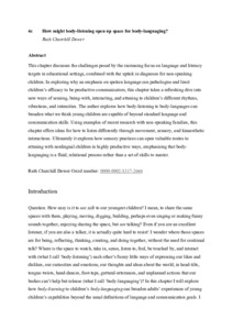 This chapter discusses the challenges posed by the increasing focus on language and literacy targets in educational settings, combined with the uptick in diagnoses for non-speaking children. In exploring why an emphasis on spoken language can pathologise and limit children’s efficacy to be productive communicators, this chapter takes a refreshing dive into new ways of sensing, being-with, interacting, and attuning to children’s different rhythms, vibrations, and intensities. The author explores how body-listening to body-languages can broaden what we think young children are capable of beyond standard language and communication skills. Using examples of recent research with non-speaking families, this chapter offers ideas for how to listen differently through movement, sensory, and kinaesthetic interactions. Ultimately it explores how sensory practices can open valuable routes to attuning with nonlingual children in highly productive ways, emphasising that body-languaging is a fluid, relational process rather than a set of skills to master.