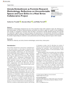 TRUNDLE, Catherine, KHAN, Sumaira and TURRELL, Molly (2025). Unruly Embodiment as Feminist Research Methodology: Reflections on Uncomfortable Spaces and Care Ethics in a Heat Stress Collaborative Project. Qualitative Inquiry. [Article]