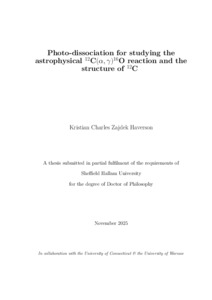 HAVERSON, Kristian Charles Zajdek (2025). Photo-dissociation for studying the astrophysical ¹²C(α, γ) ¹⁶O reaction and the structure of ¹²C. Doctoral, Sheffield Hallam University in collaboration with the University of Connecticut & the University of Warsaw. [Thesis]