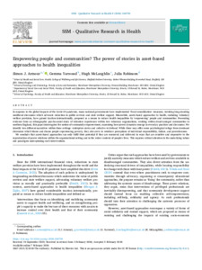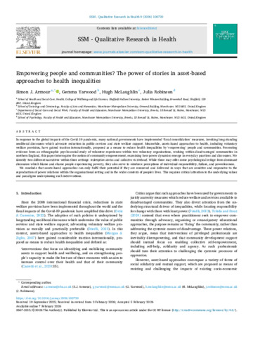 ARMOUR, Simon, YARWOOD, Gemma, MCLAUGHLIN, Hugh and ROBINSON, Julia (2026). Empowering people and communities? The power of stories in asset-based approaches to health inequalities. SSM - Qualitative Research in Health, 9: 100720. [Article]