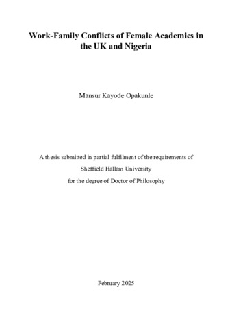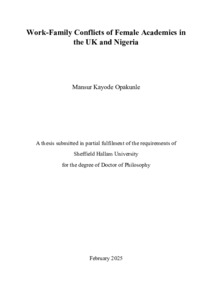 OPAKUNLE, Mansur Kayode (2025). Work-Family Conflicts of Female Academics in The UK and Nigeria. Doctoral, Sheffield Hallam University. [Thesis]