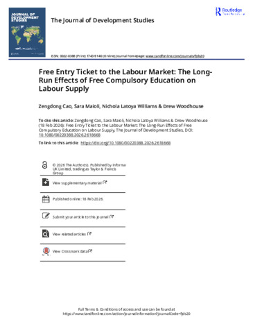CAO, Zengdong, MAIOLI, Sara, WILLIAMS, Nichola Latoya and WOODHOUSE, Drew (2026). Free Entry Ticket to the Labour Market: The Long-Run Effects of Free Compulsory Education on Labour Supply. The Journal of Development Studies, 1-20. [Article]