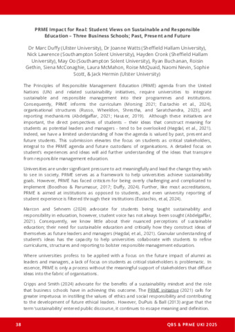 DUFFY, Marc, WATTS, Jo, LAWRENCE, Nick, CRONK, Hayden, OO, May, BUCHANAN, Ryan, GETHIN, Roisin, MCCONAGHIE, Siena, MCMAHON, Laura, MCQUAID, Roise, NEVIN, Naomi, SCOTT, Sophie and HERMIN, Jack (2025). PRME Impact for Real: Student Views on Sustainable and Responsible Education – Three Business Schools; Past, Present and Future [Extended abstract]. In: PRME Chapter UK and Ireland Annual Conference 2025, Queens University Business School, Belfast, 17 Jun 2025 - 19 Jun 2025. [Conference or Workshop Item]