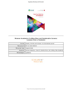 MARSH-DAVIES, Katy, LANKA, Evelyn and SUCKLEY, Louise (2026). Women academics crafting slow and sustainable careers: lessons from a pandemic. Equality, Diversity and Inclusion: An International Journal. [Article]