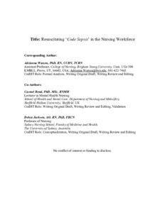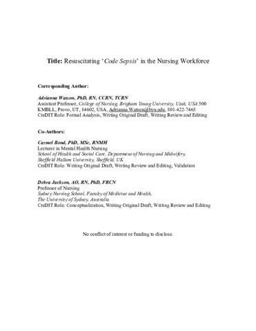 WATSON, Adrianna L, BOND, Carmel and JACKSON, Debra (2026). Resuscitating Code Sepsis in the nursing workforce [Editorial]. Contemporary nurse, 1-4. [Article]