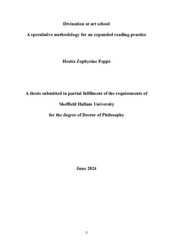 PEPPÉ, Hestia Zephyrine (2024). Divination at art school: A speculative methodology for an expanded reading practice. Doctoral, Sheffield Hallam University. [Thesis]