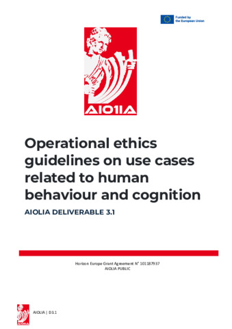 Bayerletal2026 Operational ethics guidelines on use cases related to human behaviour and cognition (AIOLIA-D3.1).pdf - Published Version