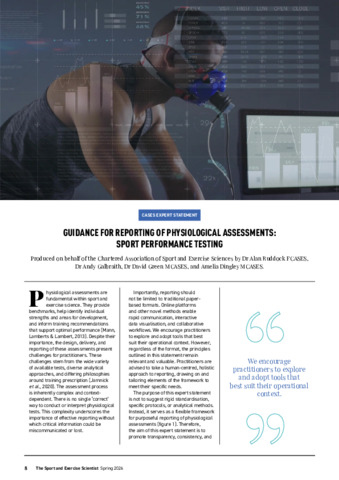 RUDDOCK, Alan, GALBRAITH, Andy, GREEN, David and DINGLEY, Amelia (2026). CASES Expert Statement on Guidance for Reporting of Physiological Assessments: Sport Testing. The Sport and Exercise Scientist (87), 8-10. [Article]