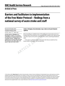 ELTRINGHAM, Sabrina, MARTINDALE, Nicola, SMITH, Craig J., POWNALL, Sue and LIGHTBODY, Elizabeth (2026). Barriers and facilitators to implementation of the Free Water Protocol – findings from a national survey of acute stroke unit staff. BMC Health Services Research. [Article]