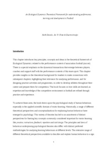 DAVIDS, Keith, CHOW, Jia Yi and ARAÚJO, Duarte (2026). An Ecological Dynamics theoretical framework for understanding performance, learning and development in football. In: CHOW, Jia Yi, DAVIDS, Keith and ARAÚJO, Duarte, (eds.) Ecological Dynamics Approach to Football. New York, Routledge, 1-27. [Book Section]