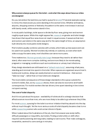 MARTÍNEZ CAPARRÓS, Belén (2026). Why women have to queue for the toilet – and what it says about how cities are designed. The Conversation. [Article]