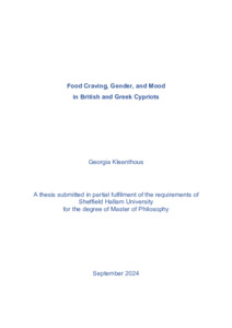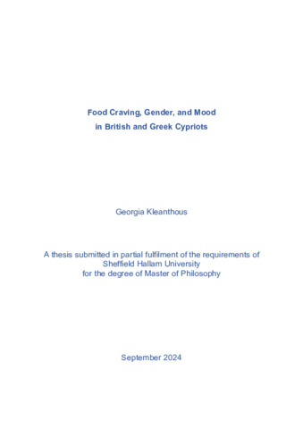KLEANTHOUS, Georgia (2024). Food Craving, Gender, and Mood in British and Greek Cypriots. Masters, Sheffield Hallam University. [Thesis]