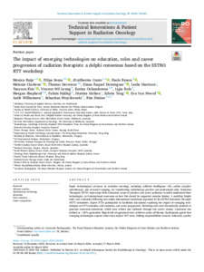 BUIJS, Monica, SOUSA, Filipa, COUTO, JGuilherme, BOSSA, Paolo, CLARKSON, Melanie, DEVEREUX, Thomas, DOMINGUES, Diana Raquel, HARRISON, Leslie, KIM, Taeyoon, LEUNG, Vincent WS, OCHANDORENA, Karina, ROLO, Ligia, SHEPHERD, Meegan, SIDDIQI, Fahim, STRIKOU, Dimitra, TONG, Edwin, WEERD, Eva Van, WILLIAMSON, Aoife, WOJCIKOWSKI, Sebastian and SIMÕES, Rita (2026). The impact of emerging technologies on education, roles and career progression of radiation therapists: a delphi consensus based on the ESTRO RTT workshop. Technical Innovations & Patient Support in Radiation Oncology, 38: 100392. [Article]