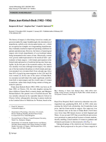 HUNT, Ben, POW, Stephen and STAHNISCH, Frank W (2021). Diana Jean Kinloch Beck (1902-1956). Journal of neurology, 268 (10), 3940-3942. [Article]
