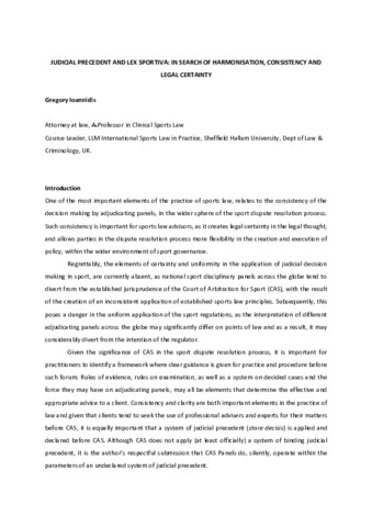 Ioannidis-JudicialPrecedentAndLexSportiva(AM).pdf - Accepted Version