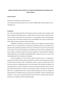 Judicial Precedent and Lex Sportiva. In search of harmonisation, consistency and legal certainty.