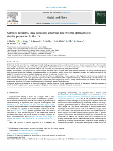 NOBLES, J., LIVSEY, L., BEECROFT, S., RADLEY, D., GRIFFITHS, C., ELLS, L., SHEARN, Katie, HOBBS, M. and POTTS, A. (2026). Complex problems, local solutions: Understanding systems approaches to obesity prevention in the UK. Health & Place, 99: 103661. [Article]