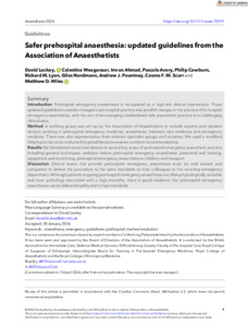 LOCKEY, David, WEEGENAAR, Celestine, AHMAD, Imran, AVERY, Pascale, COWBURN, Philip, LYON, Richard M., NORDMANN, Giles, POUNTNEY, Andrew J., SCURR, Cosmo F. M. and WILES, Matthew (2026). Safer prehospital anaesthesia: updated guidelines from the Association of Anaesthetists. Anaesthesia. [Article]
