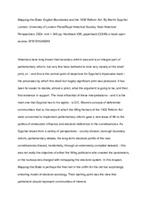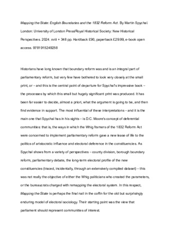ROBERTS, Matthew (2025). Mapping the State: English Boundaries and the 1832 Reform Act. By MartinSpychal. London: University of London Press/Royal Historical Society: New Historical Perspectives. 2024. xviii, 348 pp. Hardback. £90, paperback £29.99, e‐book open access. ISBN 9781915249258 [Book Review]. Parliamentary History, 44 (3), 467-469. [Article]
